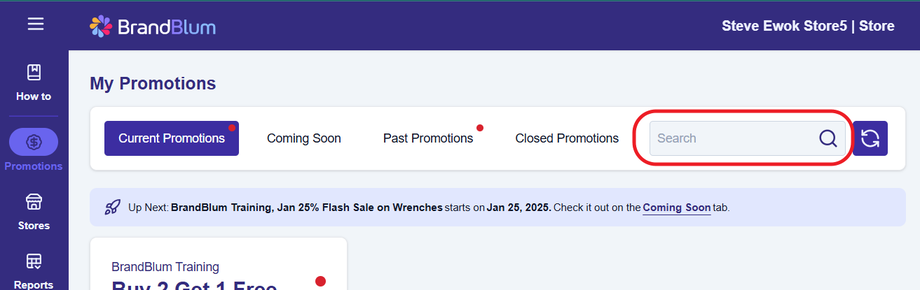 Looking for a specific promotion? Just type in part of the promotion name, promotion rules, or promotion notes in the search box to find what you need. Keep in mind, the search only shows promotions for the tab you’re on, so make sure you’re in the right place!