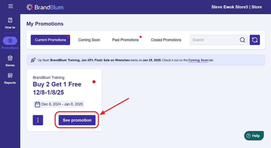 Before you can submit the task, you'll need to go to your Store Detail page for the Promotion. From the My Promotions page, click the See Promotion button.